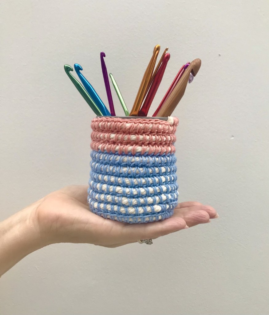 I also used the thread recently to make this rope crochet coil wrapped tin for my crochet hooks (formerly a tin of sweetcorn)!