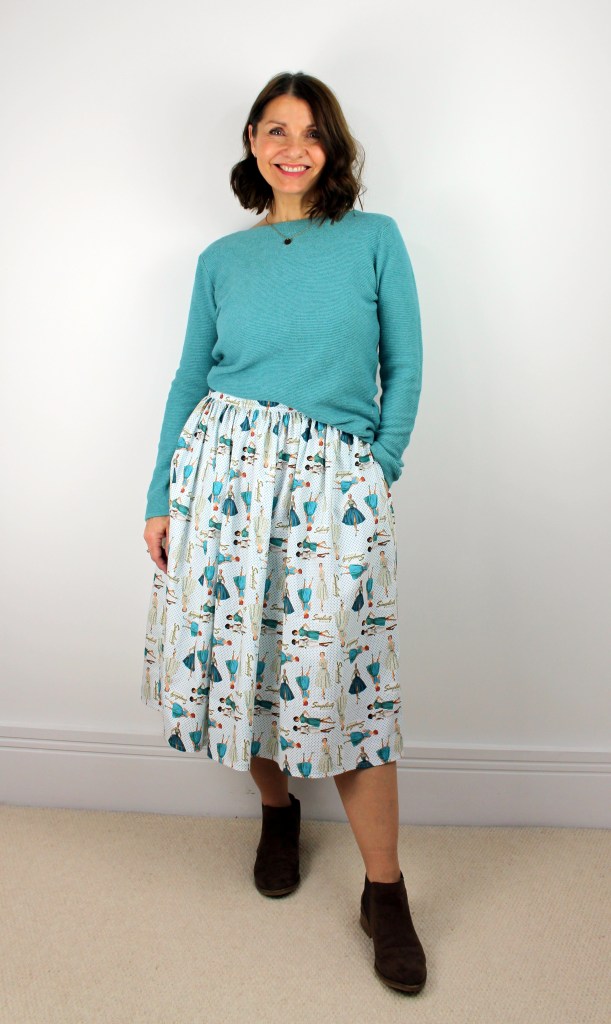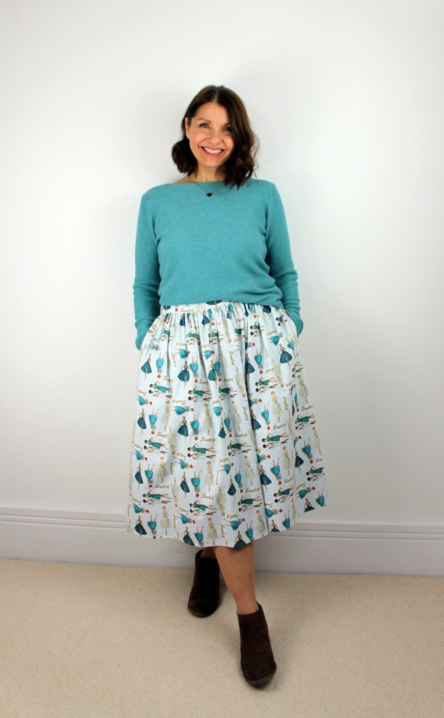 Choosing which pattern to use with this fabric was tricky. I’m quite a bad decision maker at the best of times, and it took some time. After swooning over several dress, top and skirt patterns, I kept coming back to this simple gathered skirt which you can make in 3 lengths. I felt that it’s simple design would pair beautifully with the fabric and also be a very wearable separate for me both in colder weather with tights and boots and in the Summer with pumps or sandals.