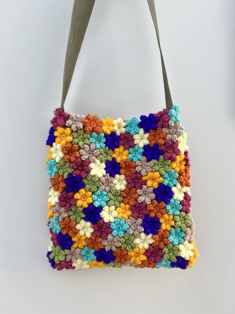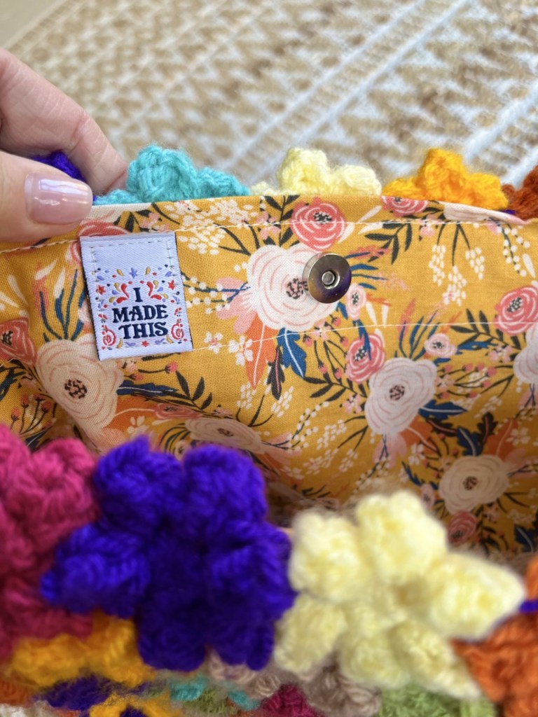 I’m so happy with the splash of subdued colour that this bag gives, and really pleased that I made it. I will say though that I’ve worn it a couple of times and where it has rubbed a little against my coat has caused a little bit of pilling on the yarn flowers, so I need to keep my eye on that, and remove those annoying little fuzzy balls as they appear.